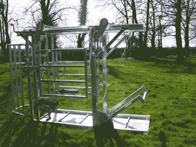 This is a special Morris crush made specifically to customer requirements. It is a version of the Morris Variable width clipper crush with a body yoke placed mid way along the crush to prevent the animal from moving from side to side.